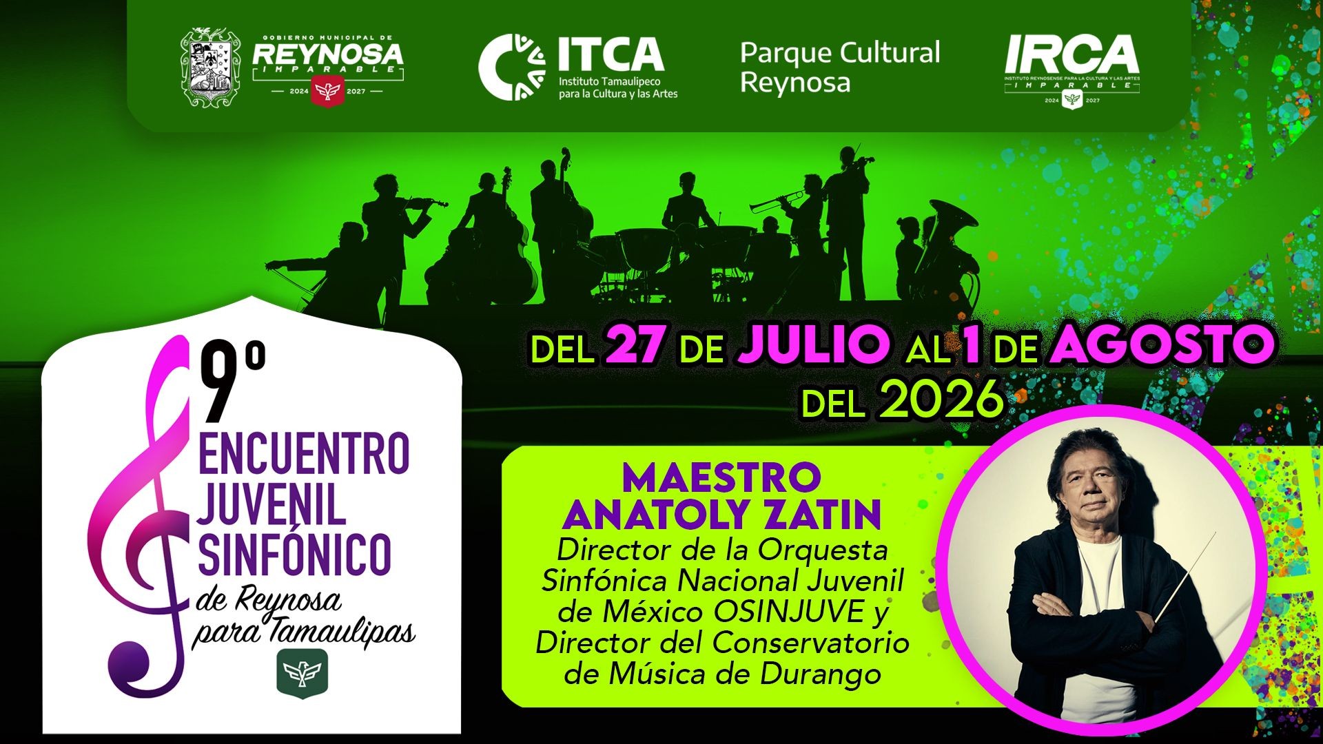 te invitan a participar en el 9º Encuentro Juvenil Sinfónico de Reynosa para Tamaulipas del 27 de julio al 1 de agosto del 2026 en IRCA Longoria.